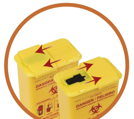 Thanks to its small size, it allows needles, catheters, etc. to be inserted directly into the container, preventing accidental discharge and providing healthcare professionals with complete safety.