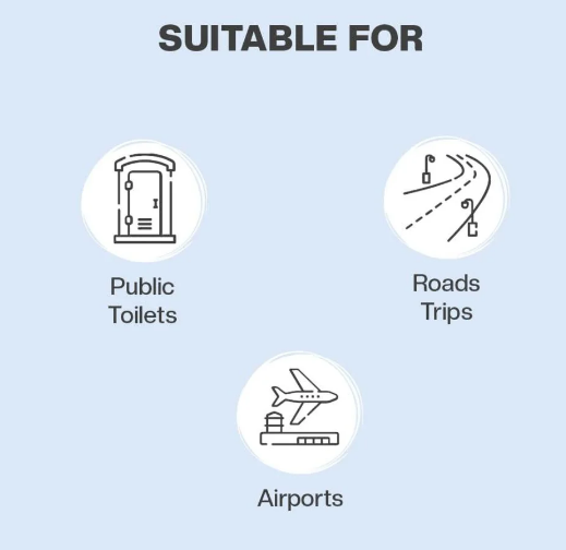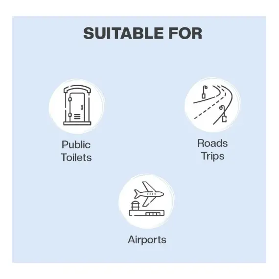 - For complete protection in public restrooms: Ideal for offices and public restrooms where direct contact with the toilet seat is required. It ensures no contact with germs and is essential for travelers and those prone to urinary tract infections and other illnesses.