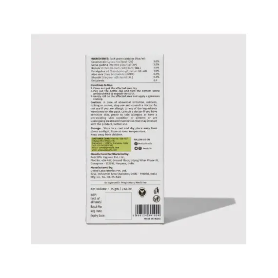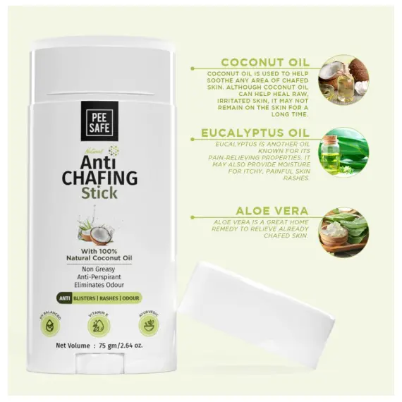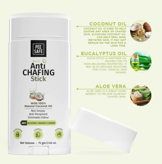 pee Safe Anti-Itch Stick, 100% Natural, for Thighs and Underarms, Suitable for Chafing, Rash, and Odors, 75g