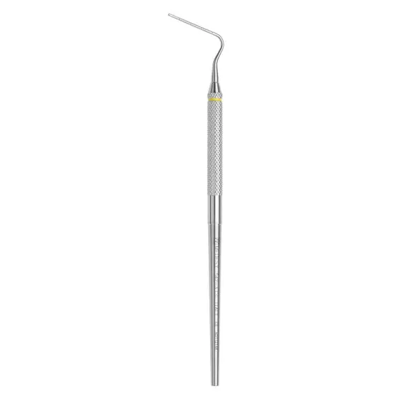 ISO 100 PLUGGER: recognizable from its flat tip available in different diameters; its main function is that of vertically plugging and condensing the guttaperca into the endodontic canal.