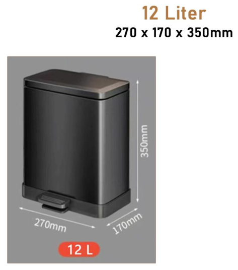 Waste Bin - Pedal Trash Can - Hydraulic - Stainless - 12L