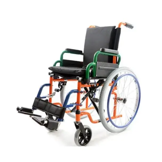 The rear wheels of the chair are large and equipped with handles so that the child can push the chair by himself.