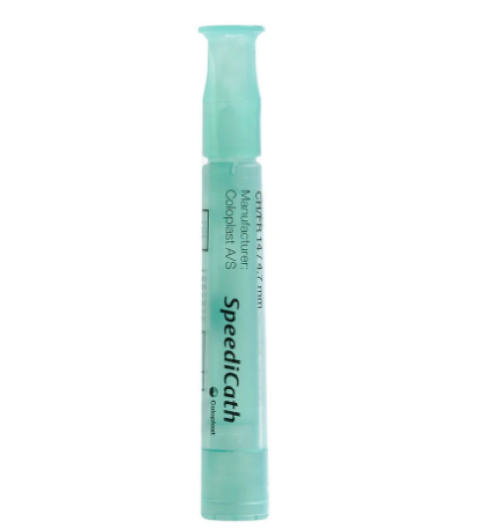 مقاس 14 / 28584 قسطرة مغطاة بمادة مزلقة جاهزة مع المحلول المزلق جمع البول انثى Coloplast Speedicath compact