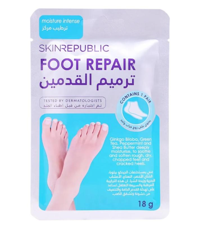 Skin Republic's Deep Hydrating Foot Repair Mask features an effective formula that deeply repairs and moisturizes the feet, helping to improve their appearance and overall health. This product contains a range of effective natural ingredients, including shea butter and vitamin E, which work to deeply nourish and hydrate the skin.It protects against dryness and cracking. This mask is easy to use; it can be applied quickly and easily, leaving skin soft and moisturized for a long time. Get healthy, attractive feet with Skin Republic's Deep Hydrating Foot Repair Mask.