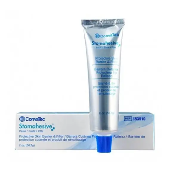 Convatic paste is used as a barrier between the skin and the anus in irregularly shaped orifices and is used in the spaces between the base of the anus bag and the anus.