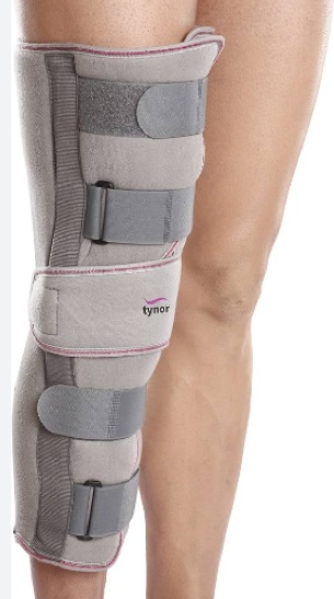 This knee brace provides support and protection for injured or surgically operated knees. Its ergonomic design is soft and comfortable, restricting movement to a slight flexion range. Aluminum back splints offer both comfort and durability. It ensures high stability and optimal knee movement restriction without causing overheating.Interlocking fabric ensures high stability and proper cushioning. A reverse buckle provides a strong closure and adjustable compression level. Easy to put on. An additional patella strap enhances restriction of movement and can be removed when not needed.