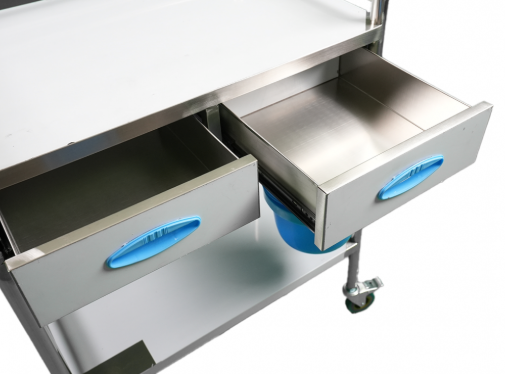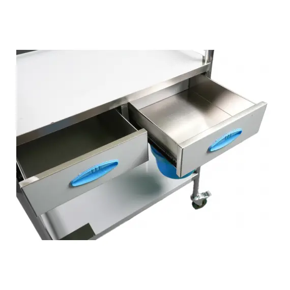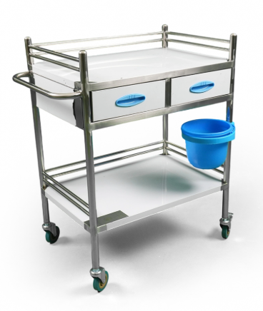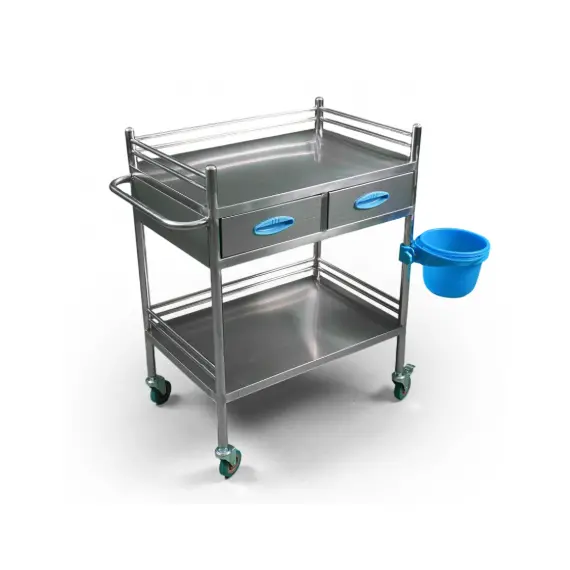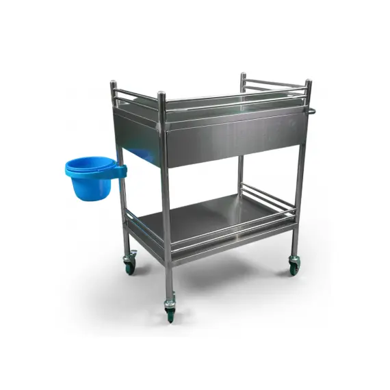Optimize your medical workspace with this high-quality stainless steel medical trolley, designed for efficient storage and easy transport of instruments and medications in clinical environments.