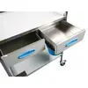 2-SHELF, WIDE-EDGED, STAINLESS STEEL MEDICINE AND EQUIPMENT TROLLEY WITH DRAWER AND BASKET
