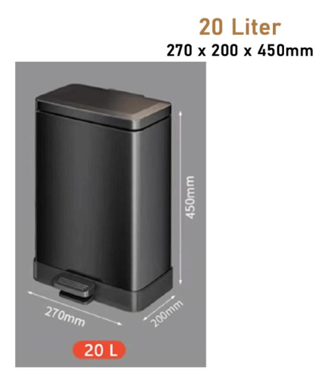 Waste Bin - Pedal Trash Can - Hydraulic - Stainless - 20L