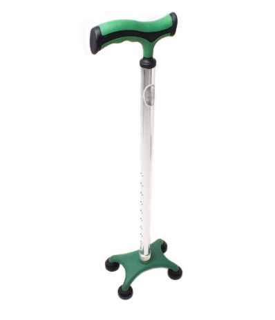 A four-base medical crutch with an ergonomically designed handle to fit comfortably in your hand.