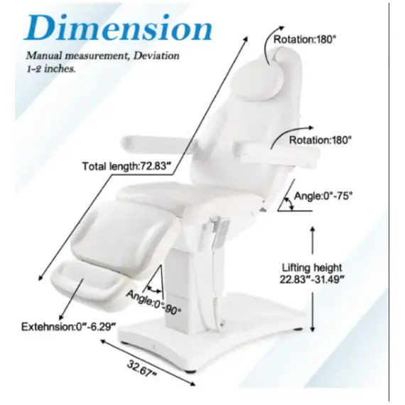 الاستلقاء السلس: دلل عملائك بتجربة مريحة ومخصصة. يميل الكرسي بسلاسة إلى وضع مسطح تمامًا، مما يجعله مثاليًا لعلاجات الوجه أو التدليك أو أي علاجات تجميل.