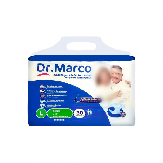 Dr. Marco adult diapers are designed to provide reliable protection and all-day comfort. Made from soft, skin-friendly materials with high absorbency to keep the skin dry and help prevent leakage, making them ideal for daily use.