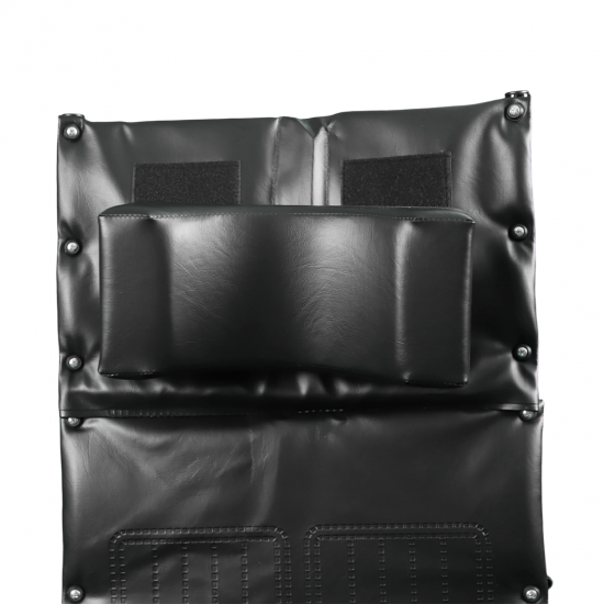The seat and backrest are covered with comfortable vinyl fabric, with removable desk-length armrests and two liftable leg rests for optimal user comfort.