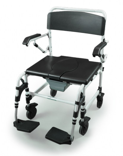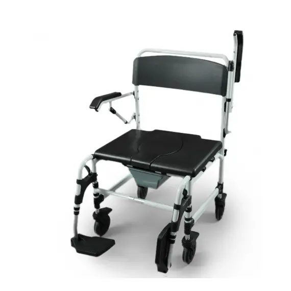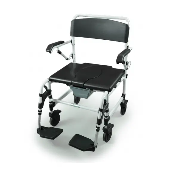 An ideal bathroom chair for heavy weights with small wheels that facilitate movement in tight spaces. The ideal choice for those looking for safety, durability, and comfort all at once.