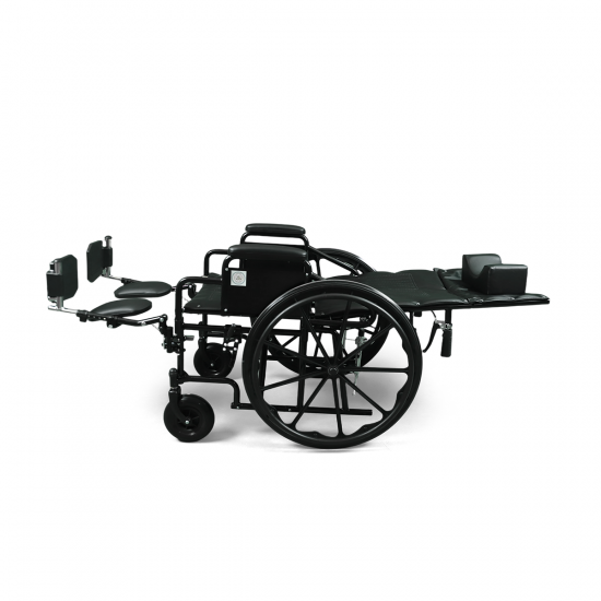 Wheelchair & bed in one: Converts into a near-flat bed position for enhanced relaxation