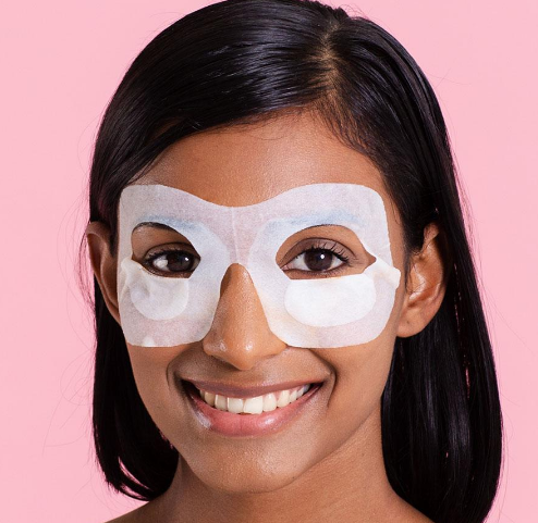 ضعيه على منطقة الأنف، حيث يكون الجانب الأملس من اللصقة لأسفل، اضغطي جيداً عليها لضمان تثبيتها علىا لبشرة جيداً.