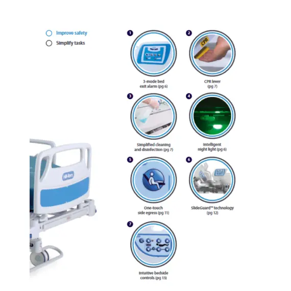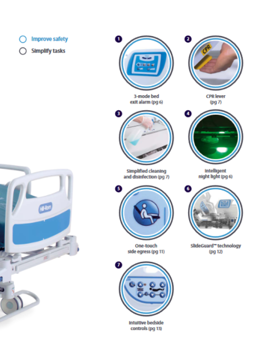 - Integrated CPR (cardiopulmonary resuscitation) position on both sides of the bed