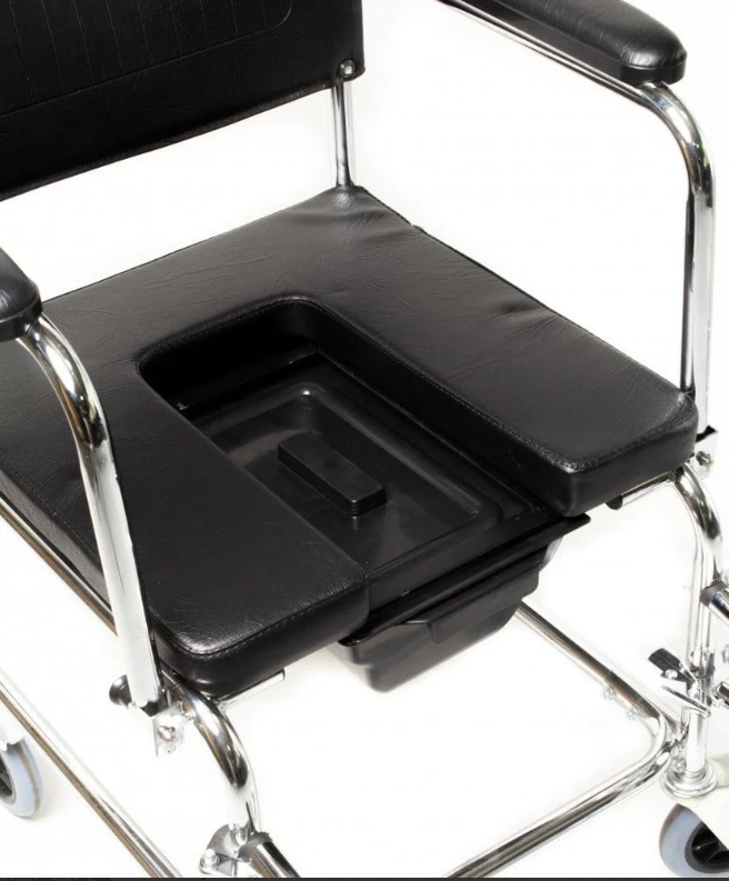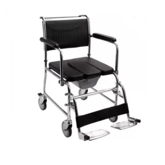 كرسي حمام متحرك بكفرات ستيل مع قاعدة حمام موديل 695 مقاس 46