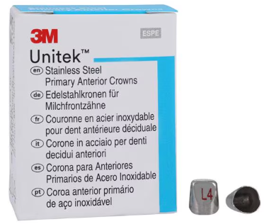 3M™ Unitek™ Temporary Stainless Steel Crowns Size 4UL Refill Primary Anterior Upper Left Lateral 907024 Pedo 5/Box