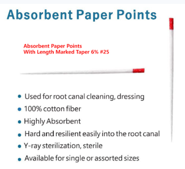 Absorbent Paper Points With Length Marked Taper 6% #25