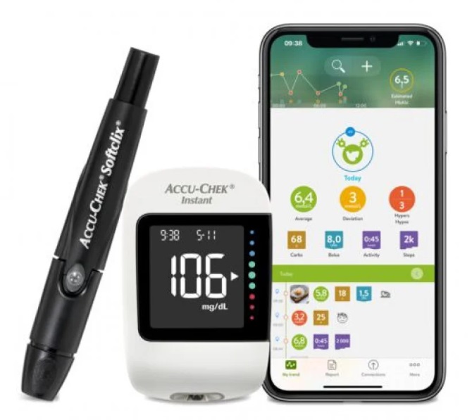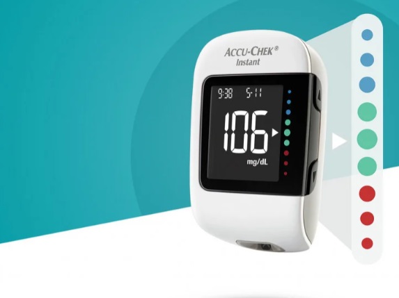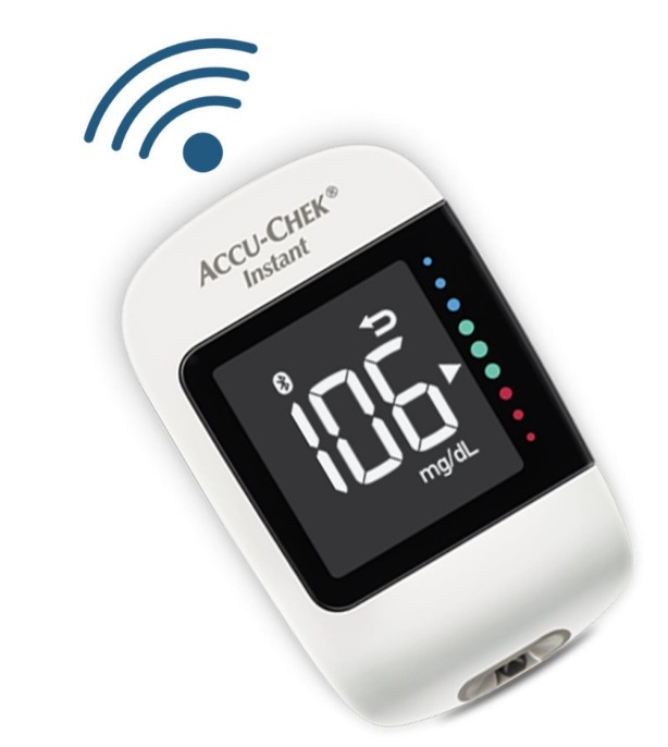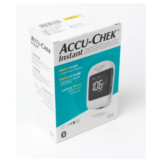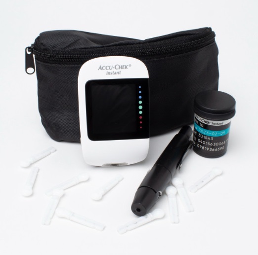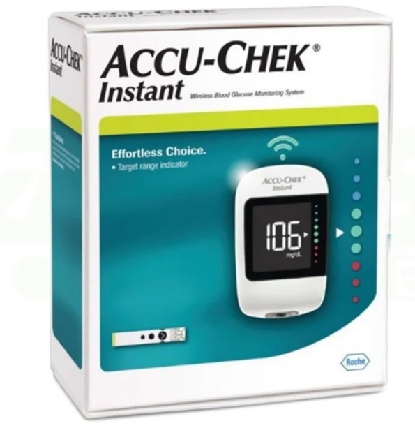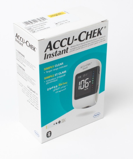- The AccuChek Instant device provides ease of use for measuring the user's average blood glucose level.
