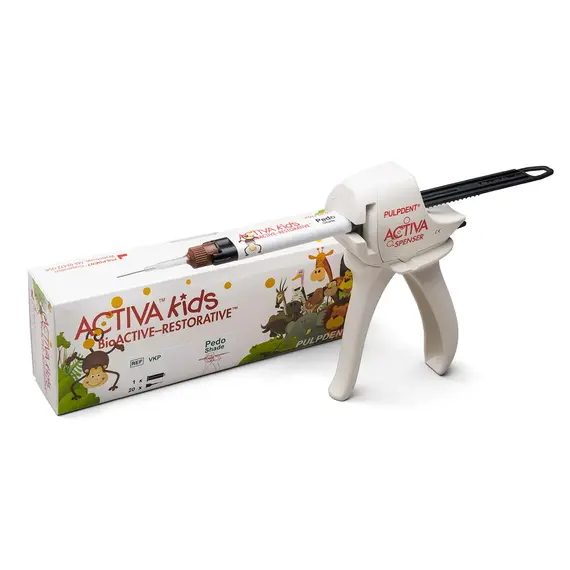 ACTIVA™ KIDS is an esthetic, BioACTIVE resin restorative that stimulates apatite formation and the natural remineralization process with release and recharge of calcium, phosphate and fluoride. It is an opaque white shade ideally suited for pediatric dentistry. 1*5MM