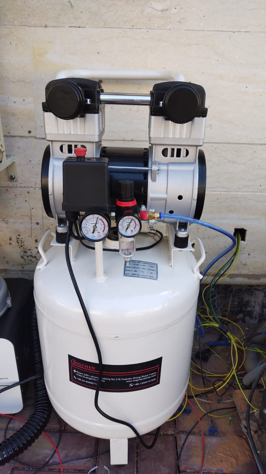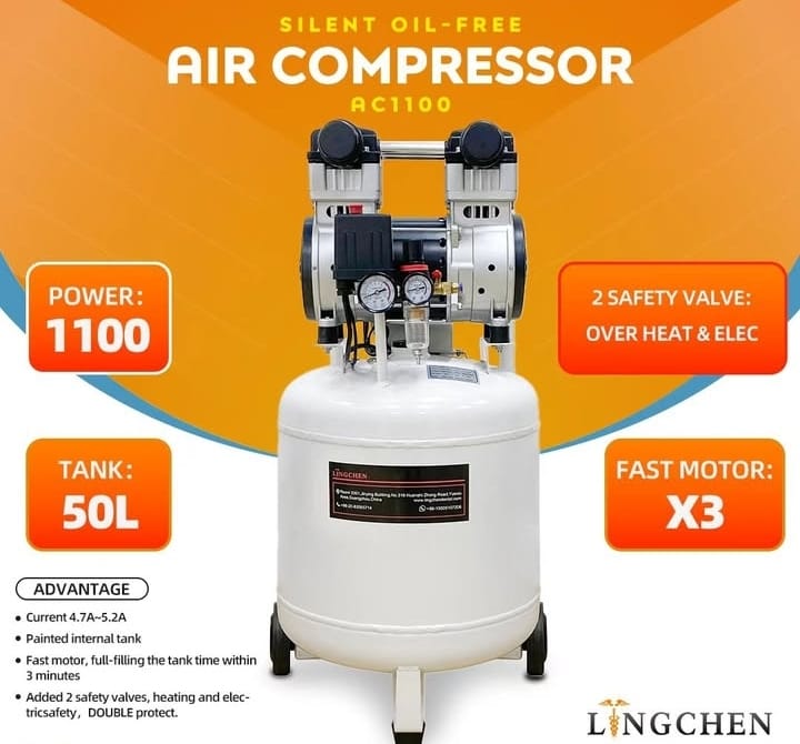 كمبراسور طبي كاتم الصوت بدون زيت ١١٠٠ واط سعة ٥٠ لتر كفالة سنة مزود بتقنية حماية عدم استقرار التيار الكهربائي محبس تفريغ من المياه فلتر التنقية الهواء من الماء