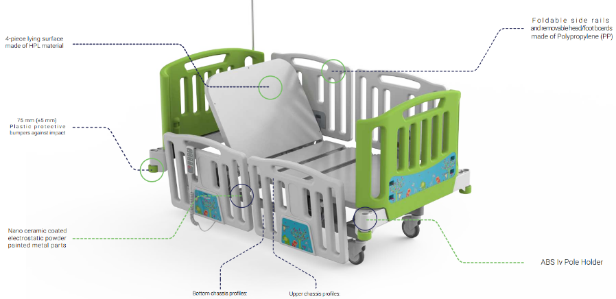 ELECTROMECHANIC PEDIATRIC BED (3 MOTORS) ALARA 3M PB-03