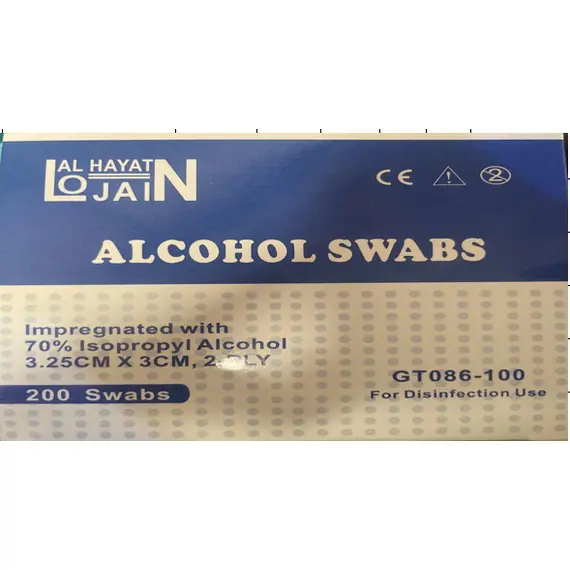 Alcohol Swabs – Box of 200 pcs are sterile swabs soaked in alcohol, used for cleaning and disinfecting the skin before injections or medical procedures. They help eliminate germs and reduce the risk of infection, designed for easy single-use application.