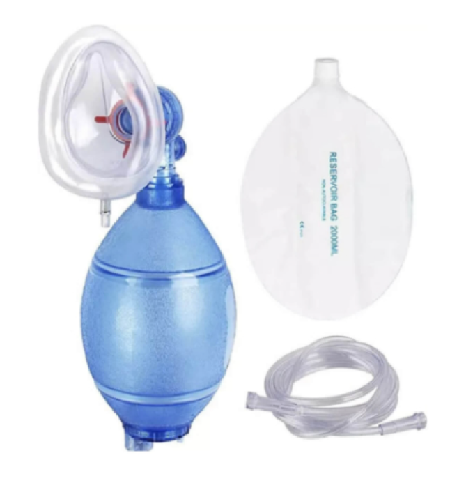 - A manual resuscitation device or bag-valve mask is used to force air into a patient's lungs.