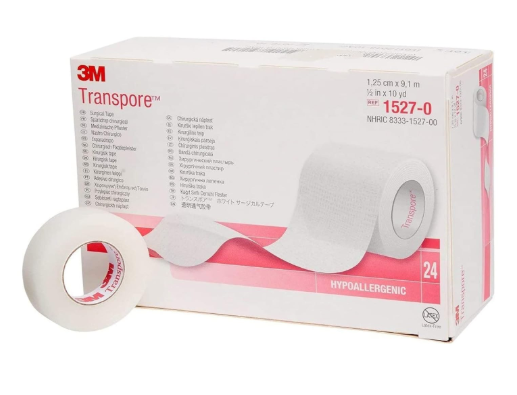 شريط طبي لاصق جراحي شفاف مقاس 1/2 انش (24 رول/علبة)