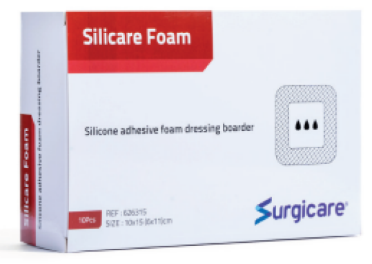 ضماد رغوي لاصق من السيليكون مدمج مع بناء متعدد الطبقات الذي يسهل إدارة السوائل الديناميكية.