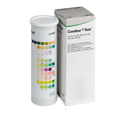 استخدام شرائط فحص كومبي 10 ميدي تيست من أشمل الأساليب المتبعة في فحص البول. تستخدم كخطوة أولى في تقرير نوعية الفحوصات المطلوبة. يستخدم شريط فحص ميدي تيست للكشف عن أمراض السكر ومتابعة حالة المريض. تستخدم شرائط كومبي 10 ميدي تيست عن طريق غمسها في عينة من بول المريض. يحتاج الشريط إلى 60 ثانية فقط للانتهاء من جميع الفحوصات. شرائط كومبي 10 ميدي تيست عالية الدقة والفعالية والحساسية تجاه التغيرات الطفيفة. شرائط كومبي 10 ميدي تيست تقوم بالكشف عن 10 معايير وهي: فيتامين سي (حمض الأسكوربيك) Ascorbic Acid البيليروبين Bilirubin الدم Blood الجلوكوز Glucose الكيتونات Ketones الكريات البيضاء Leukocytes النيترايت Nitrite درجة الحموضة pH البروتين Protein اليوروبيلينوجين Urobilinogen العلامة التجارية: Roche.