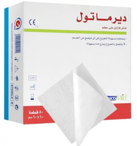 ديرماتول شاش فازلين طبي معقم 10×10- 50قطعة DERMA TULLE STERILE MEDICAL SOFT PARAFFINE IMPREGNATED