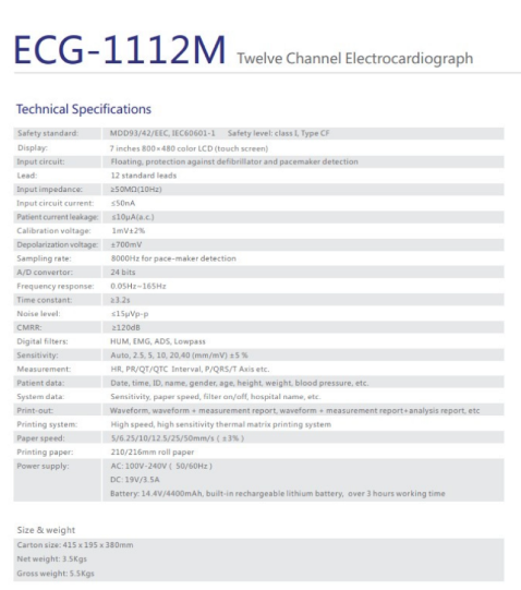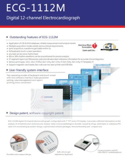 مواصفات كير ويل جهاز تخطيط القلب 12 قناة 1112M: