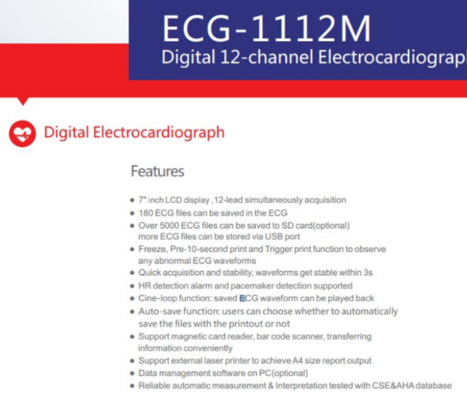 جهاز تخطيط القلب الكهربائي 12 قناة ECG 1112M