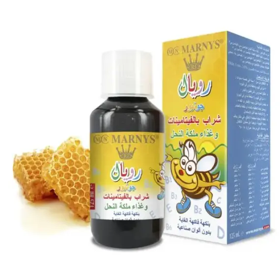 - مارنيز رويال جونيور هو شراب متعدد الفيتامينات وغني بغذاء ملكات النحل والنكهة الذكية لفاكهة الغابة والتي تعزز من الطاقة المثالية أثناء فترات النمو البدني والذهني والنقاهة وقصور التغذية الطبيعية