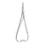 For needles: 2-0, 3-0, 4-0 Used to grasp suture needles during suturing when pushing/pulling the needle and suture through tissue. It has short serrated jaws at the distal end to provide better grip of the needle and it is available in a wide variety of sizes and designs, such as: 1) a self-retaining, scissors-like design with ring handles at the proximal end; 2) a tweezer-like design with bowed, hinged handles that are operated by squeezing them together; and 3) a heavy-duty pincer-like design. some types may utilize inserts made of hard materials (e.g., tungsten carbide) and include scissor blades.