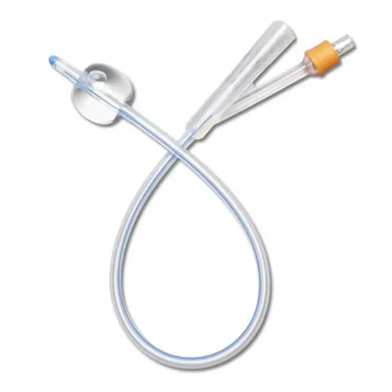 قسطرة Foley سيليكونية، مزدوجة المخرج. تُستخدم لتصريف البول بشكل آمن ومستمر من المثانة، مصنوعة من السيليكون لتوفير راحة أعلى وتقليل التهيج أثناء الاستخدام الطويل.