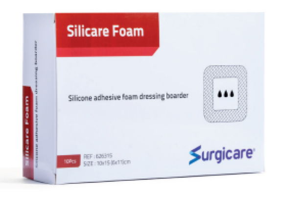 ضماد رغوي لاصق من السيليكون مدمج مع بناء متعدد الطبقات الذي يسهل إدارة السوائل الديناميكية.