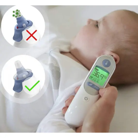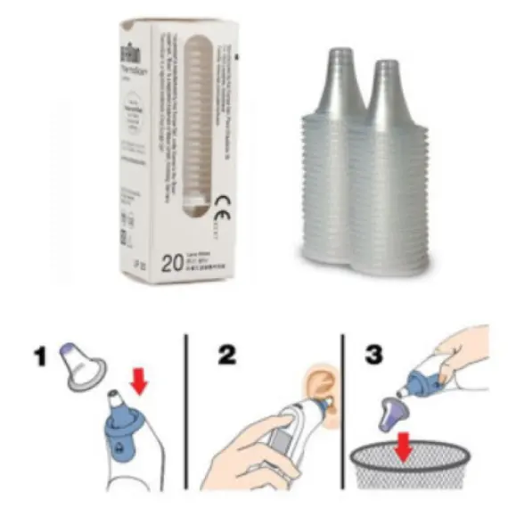 - يتم تصنيع الغطاء من مواد عالية الجودة ومتينة للحفاظ على سلامة الجهاز وتوفير تجربة استخدام موثوقة، حيث يتم تصميم الغطاء ليتناسب بشكل مثالي مع جهاز الحرارة وكذلك تجويف الأذن بشكل مريح، مما يسهل تثبيته وإزالته بسهولة.