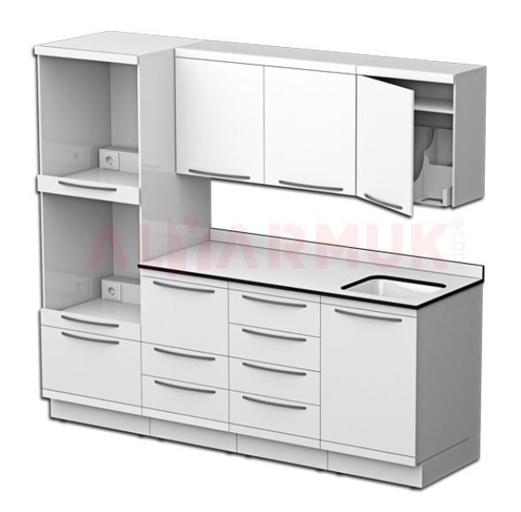 تتكون بنشات المختبر بعرض 210 سم من وحدة حوض مغسلة من الستانليس ستيل 304، كبينة بـ 4 أدراج وأخرى بـ 3 أدراج، وحدة عمودية لجهاز أوتكلاف مع قاعدة قابلة للسحب، درج تخزين، ووحدات مستهلكات جدارية.