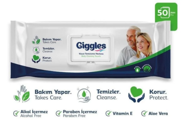 - مناديل مبللة جيجيلز هي إحدى العلامات التجارية المشهورة للمناديل المبللة، حيث يتم استخدام المناديل بشكل يومي للمرضي غير القادرين على الاستحمام كمرضي الغيبوبة والخاضعين للعمليات الجراحية والمصابين بالأمراض الجلدية.