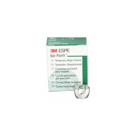 تيجان مؤقتة 3M™ Iso-Form™ Crowns للأضراس، إعادة تعبئة، رقم L‑79، عبوة 5 قطع. تستخدم لحماية الأسنان المؤقتة أثناء تحضير الأسنان وتركيب التعويضات المؤقتة.
