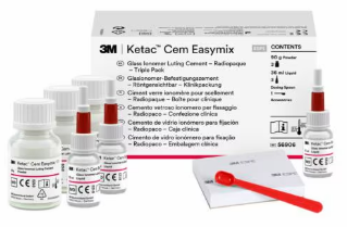 3M™️ Ketac™️ Cem Easymix هو إسمنت لوتينغ من نوع الزجاج أيونومر، يأتي في عبوة ثلاثية 56906، مصمم لتثبيت التيجان والجسور بشكل آمن ودائم. يوفر ربطًا قويًا للأسنان مع إطلاق الفلورايد للمساعدة في حماية الأسنان المحيطة.
