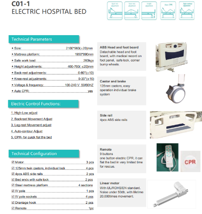 سرير كهربائي 5 حركات جوانب هيدروليك صيني