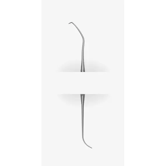 Dental explorers are small pointed tools with a slight hook at the end. Having a slim handle they are used for exploring for soft spots in your teeth that might indicate decay. , The hook on the end is used for tactile investigation of the enamel. Double-ended. ,