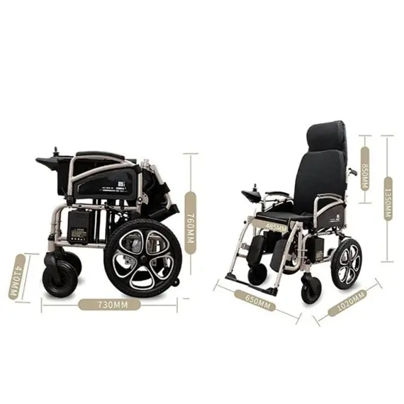 كرسي كهربائي ظهر طويل مع رافع قدم بطارية ليثيوم جانبية مع جوانب متحركة