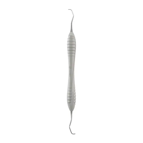 For the removal of sub-gingival calculus and for the root cleaning. Gracey curettes are the most popular and common, less traumatic than the Universal type. They are site specific as they are designed and assorted to adapt to the specific area or tooth surface to be treated. The blade of the Gracey curette is off set from the terminal shank at 70,° and sharped only in one side. 3-4 Anteriors. Ergonomic LEVANTE Silicon handle.