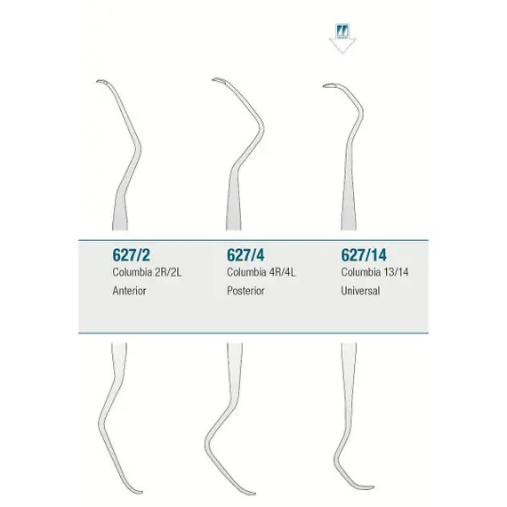 Universal For the removal of sub-gingival calculus and for the root cleaning. Designed to work in all areas of the mouth with a semicircular tip used at 90° to the tooth root surface. Both sides of each blade can cut.